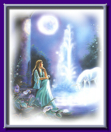 Every night I dream, Silent footfalls in my sleep, Flitting through the rising mist, I see glimpses; brilliant white. Dream eyes watch me search, Still, noiseless figures in the trees, They understand the need, They know it's all in vain. Countless times I've tried, Just one glance would be enough, An endless game, The winner; no one knows. I command, I ask, I plead, Nothing seems to work, He doesn't feel my want, As the mists part yet again. I give up and sit, Tears coursing down my cheeks, And he steps out, and I finally see My life, my love, my timeless Unicorn |